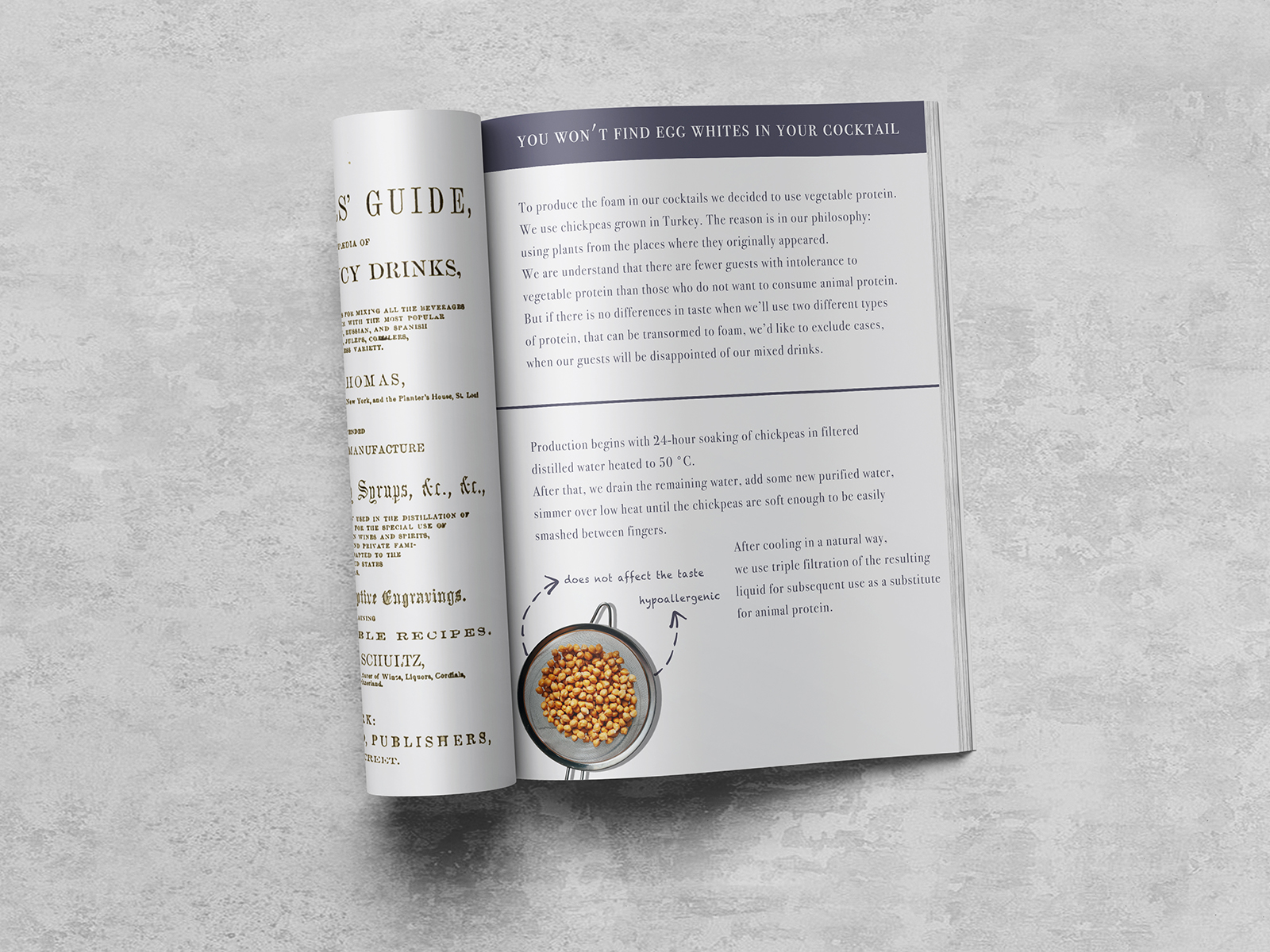 Based on the principle of glossy magazines with issues dedicated to the changing seasons, this material is a description of the inner workings of the bar with a description of the most important processes and interpretation of the concept: "why the bar uses hypoallergenic protein", "how we prepare caviar from syrup" and much more.
